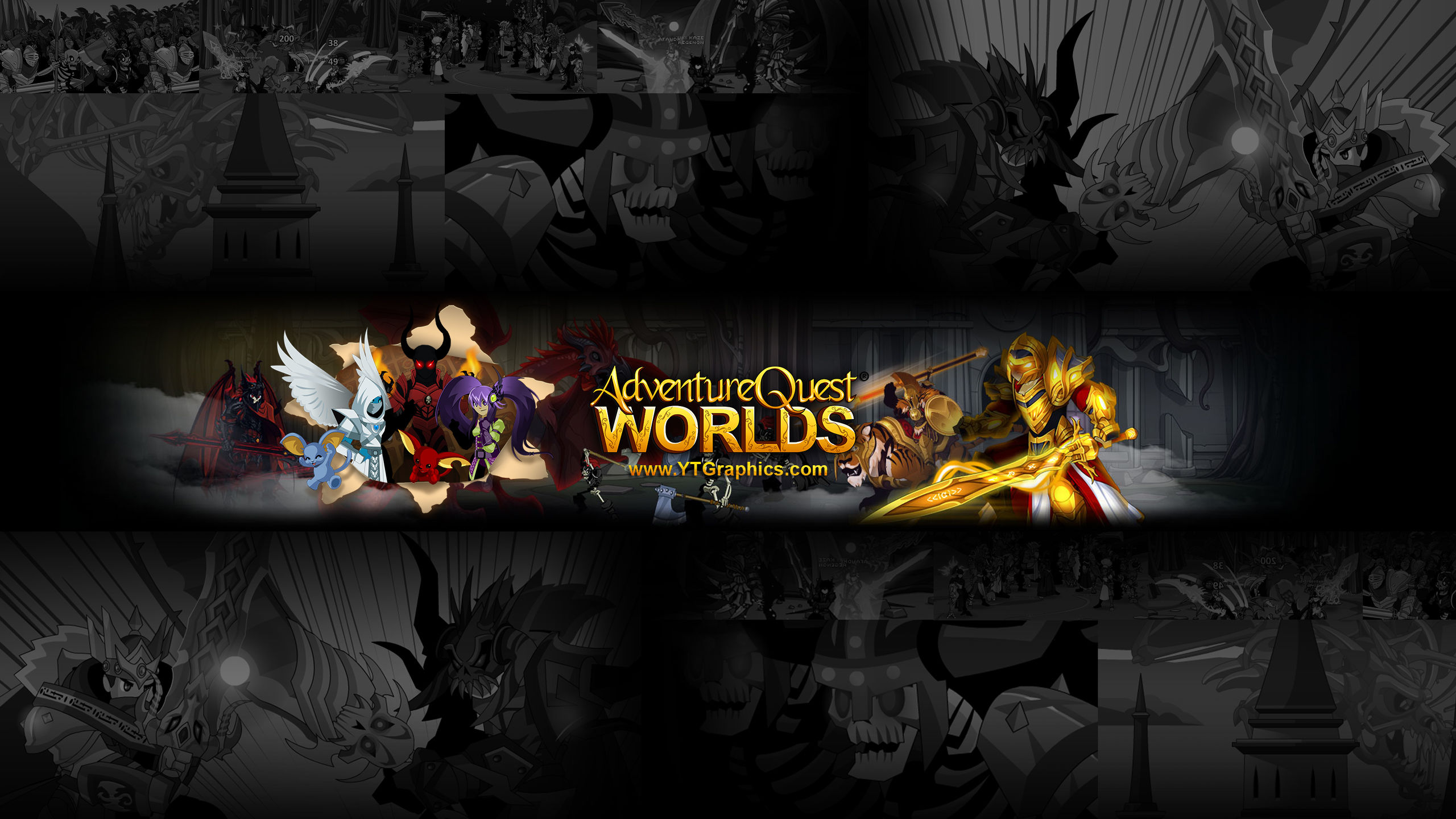 Today’s YouTube channel art banner is for the online role playing game AdventureQuest Worlds. Using images from the game with a faded black and white background.