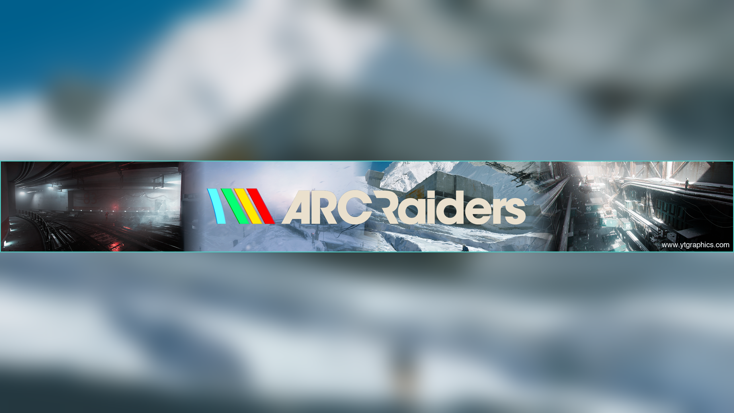 This custom YouTube banner features iconic Arc Raiders imagery with the game’s signature rainbow stripe logo. The design showcases atmospheric in-game environments blended into a central strip, perfect for gaming channels covering Arc Raiders content, walkthroughs, or news. Download dimensions are optimized at 2560×1440 pixels to meet YouTube’s recommended banner specifications.
