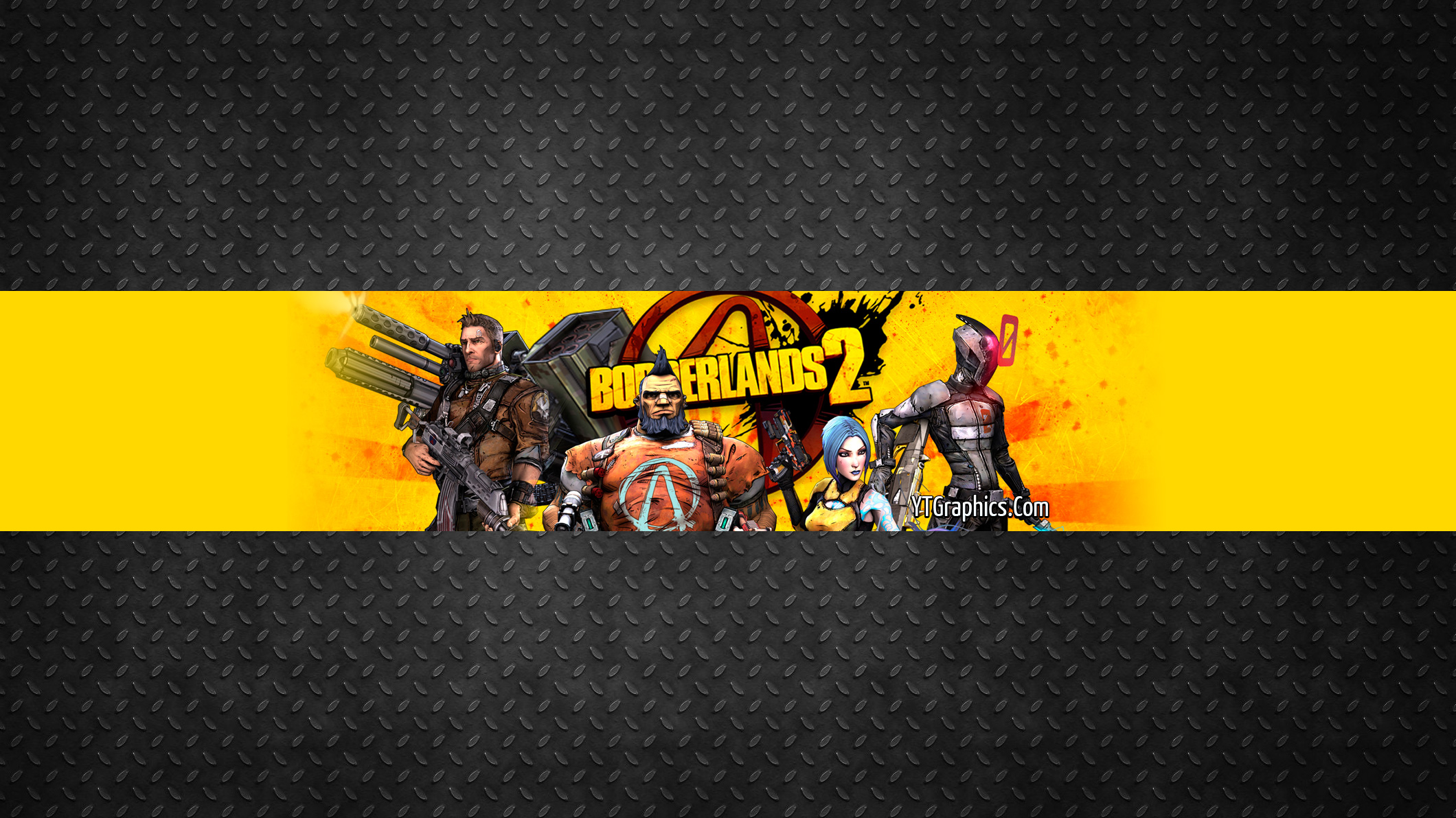 Description: Yellow channel art featuring the crew from Borderlands 2.
