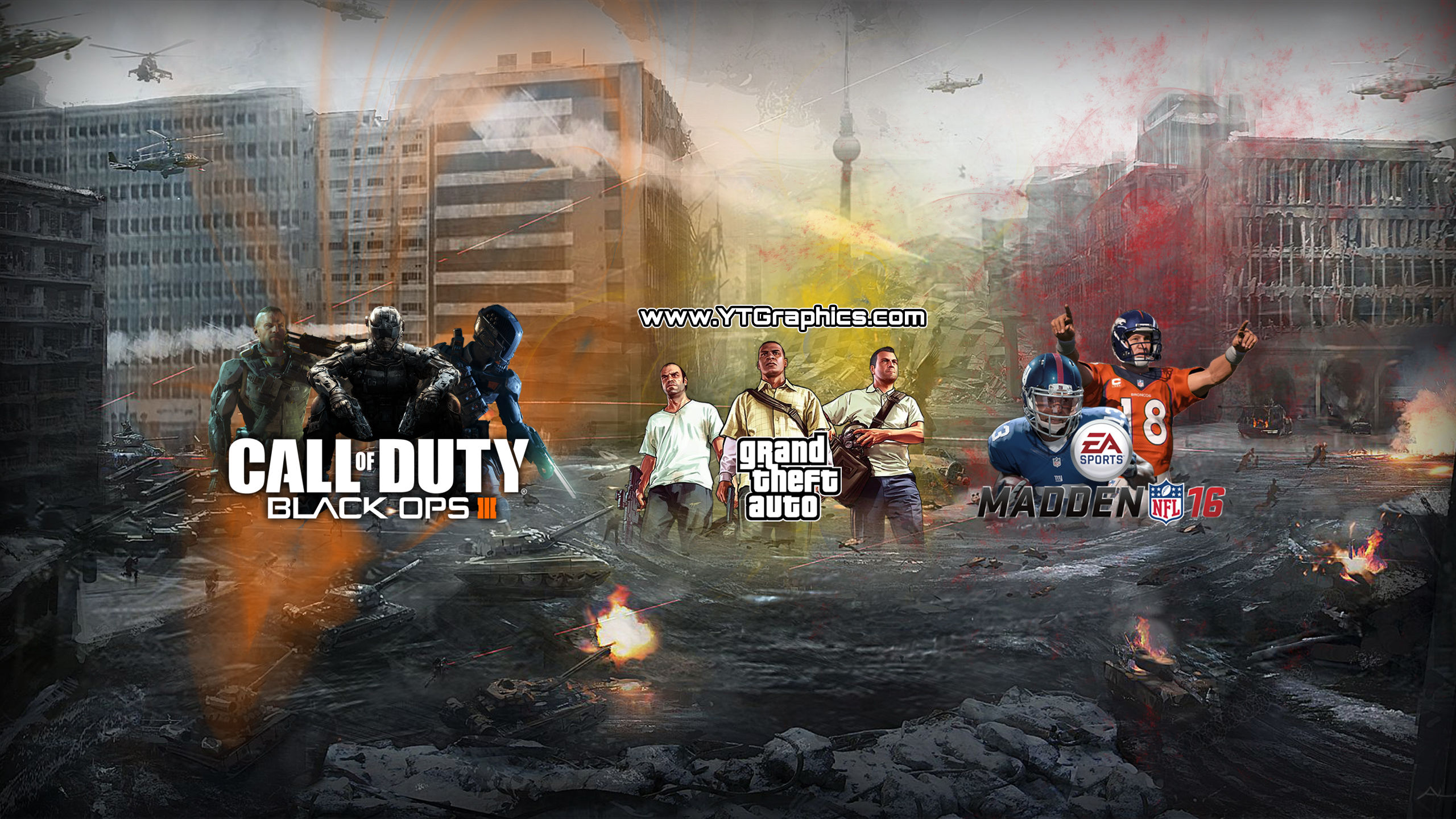 Once again, a YouTube channel art banner by user request. It includes images form Call of Duty: Black Ops 3, Grand Theft Auto V, and Madden 16.