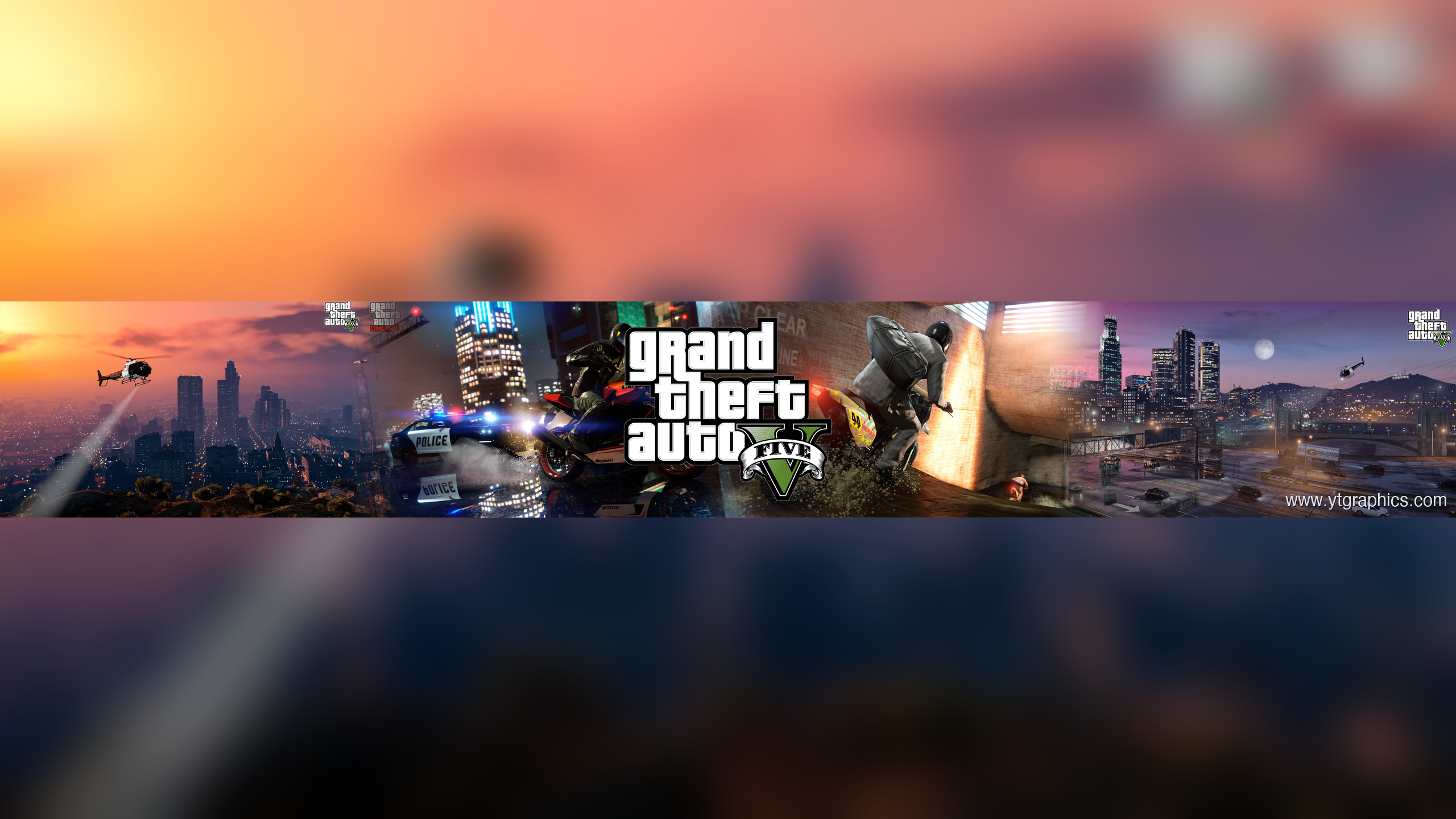This custom YouTube banner showcases the iconic Grand Theft Auto V artwork with the signature cream-colored logo set against a vibrant composition of in-game scenes featuring helicopters, motorcycles, characters, and the sun-soaked streets of Los Santos. Designed specifically for gaming content creators, streamers, and YouTube channels dedicated to GTA V and GTA Online coverage, this banner features a distinctive green glow effect that captures the game’s energetic aesthetic. Optimized at 2560×1440 pixels to meet YouTube’s recommended channel art specifications, this banner ensures your GTA V content stands out with professional branding perfect for gameplay videos, heist tutorials, online mission guides, and streaming channels.