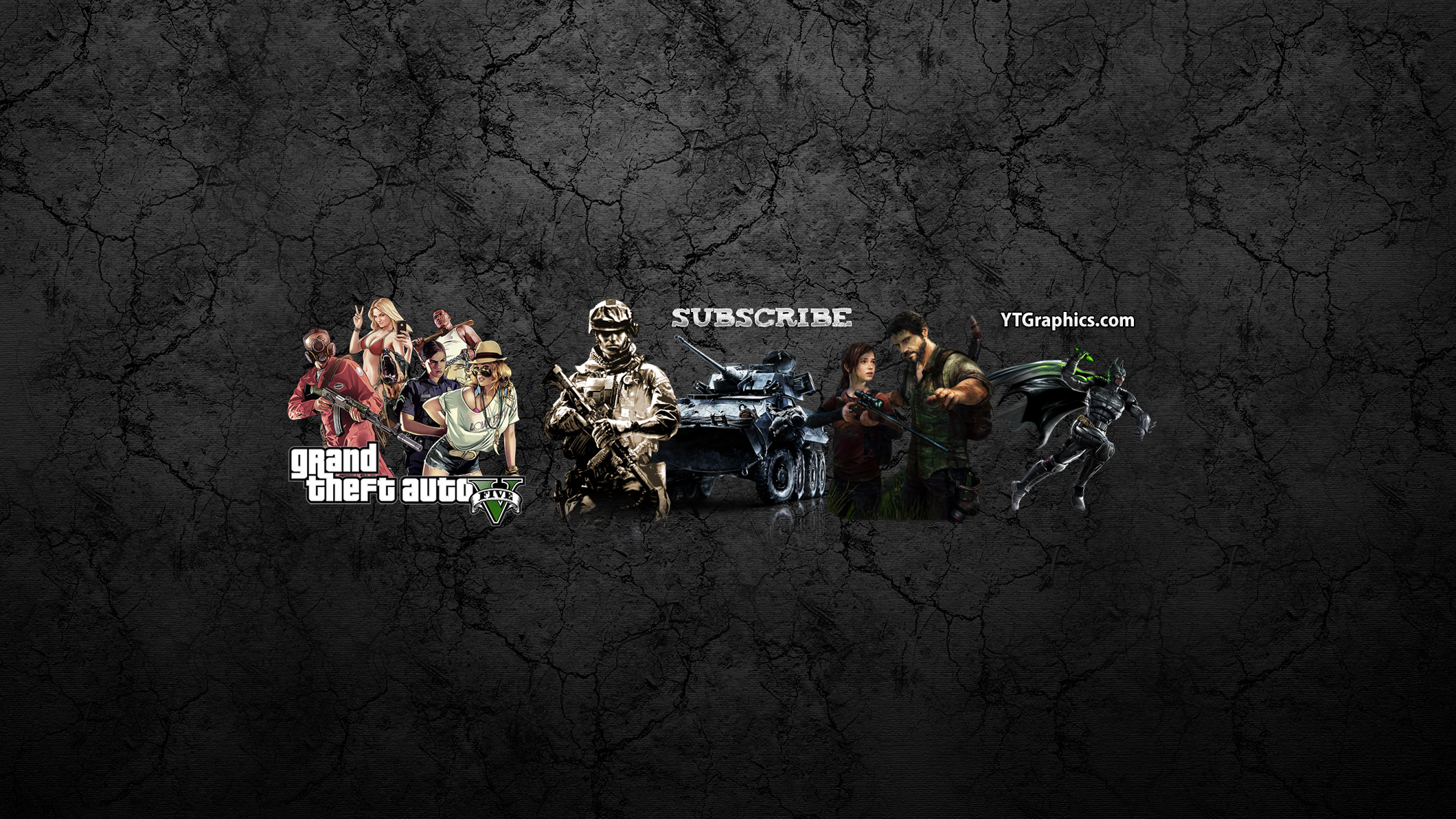 Most of our YouTube channel art at this point has been about a single game. We’re changing things up a bit. Here’s a banner with images from games that are currently popular. It’s great for if you have a YouTube channel about gaming in general, and not just focusing on a single game.