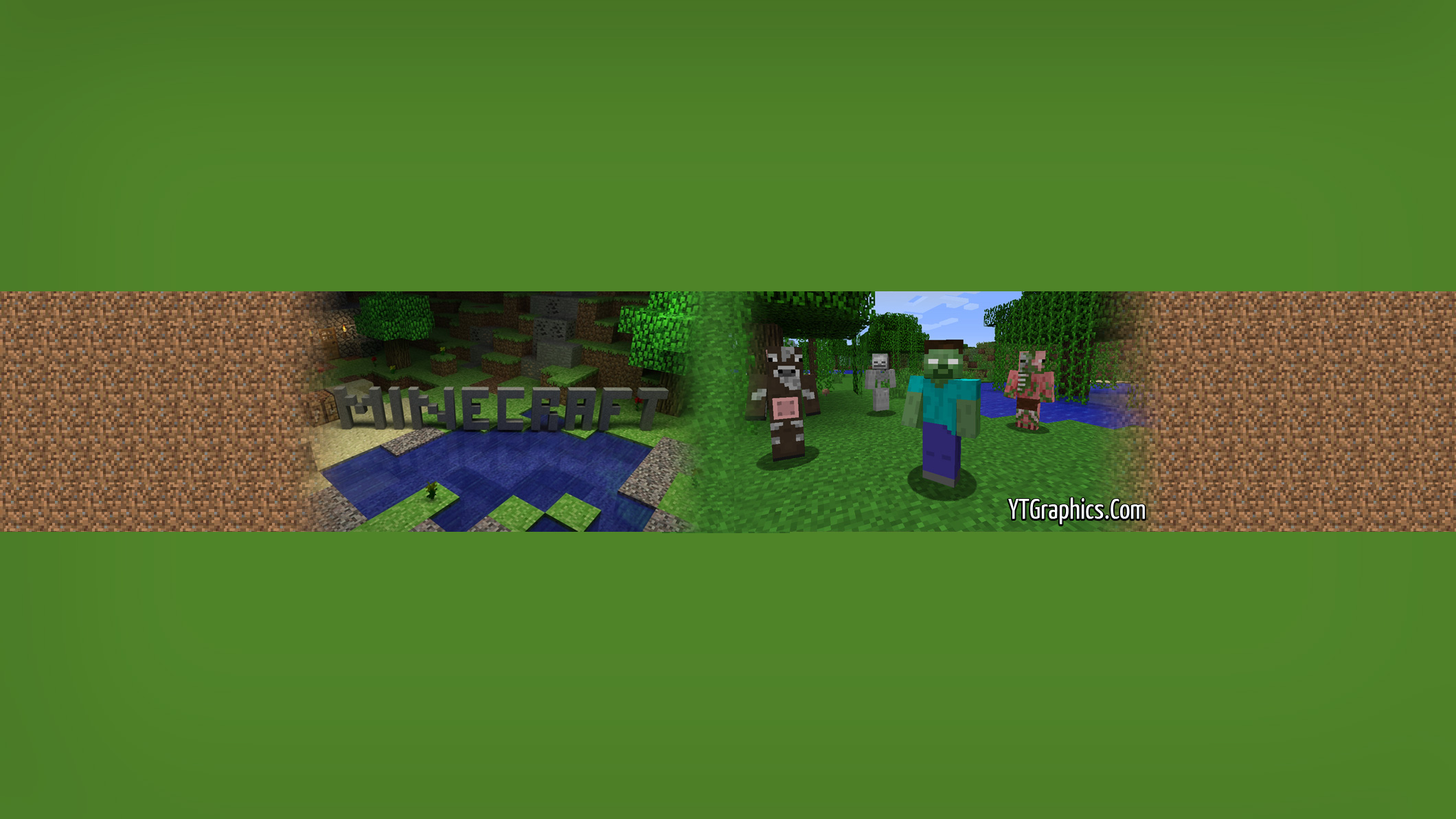 Description: Green and brown channel art featuring images from the popular Minecraft video game.