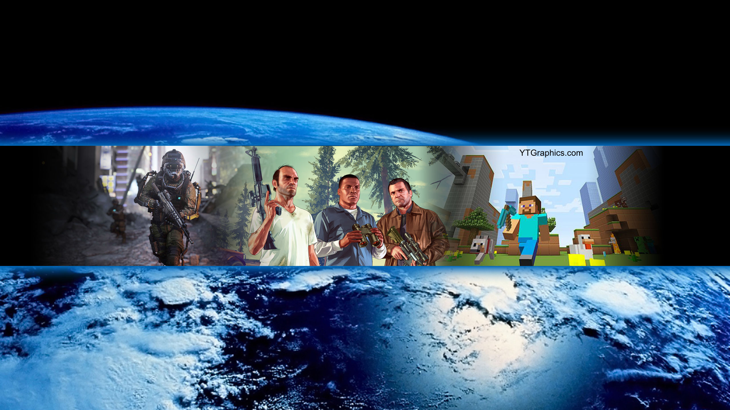 Today’s banner is by request through the comment section. It includes images from the following games: Call of Duty: Advanced Warfare, Grant Theft Auto 5, and Minecraft. Placed over earth as the background… it’s a metaphor for those games owning everything else right now. But not really, just picked that image randomly.