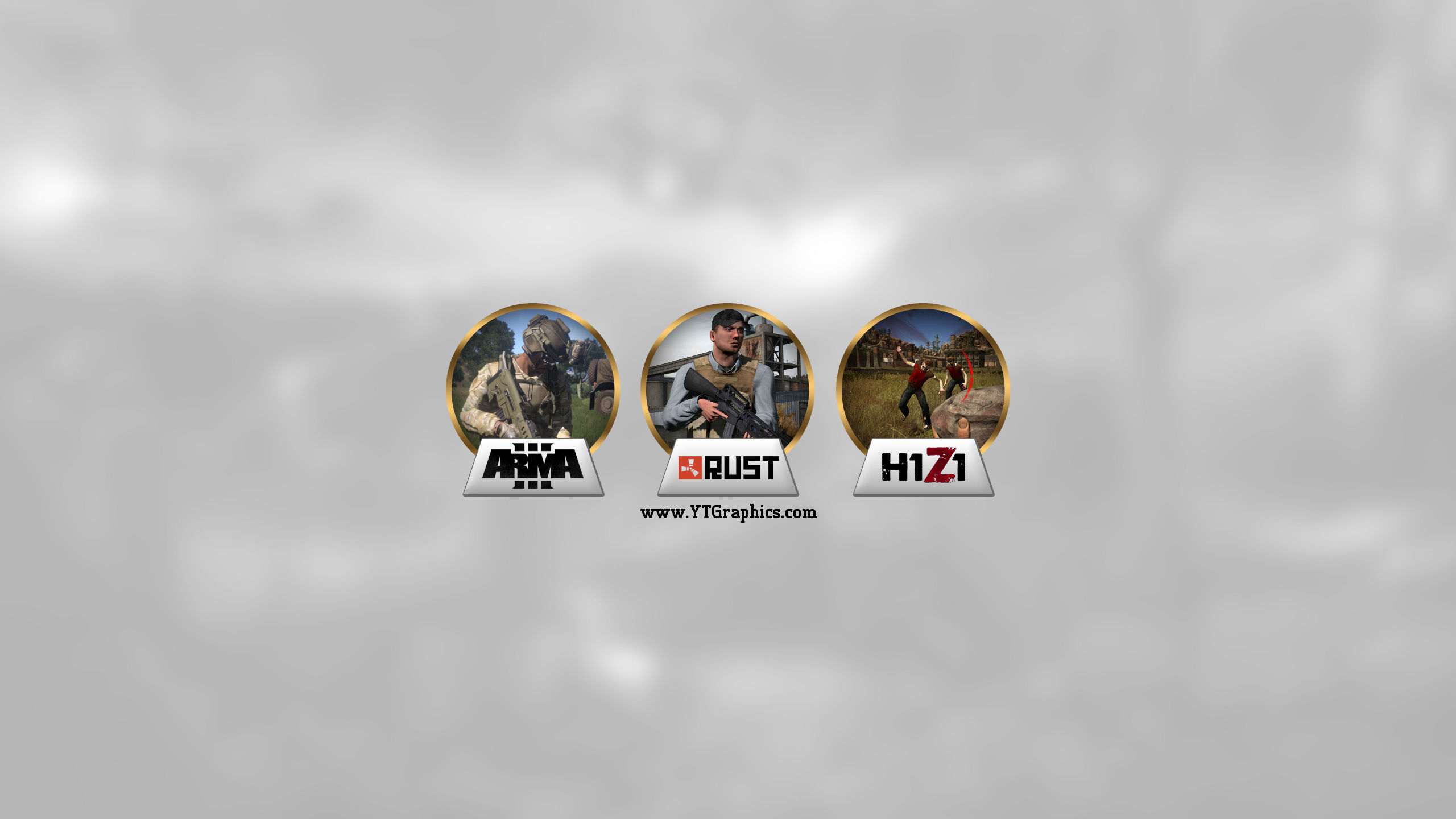 The banner features a mix of three popular video games - H1Z1, Arma 3, and Rust. The background is a deep blue and has a slightly blurred effect, giving a sense of motion. The three game logos are prominently displayed in the center of the banner, with each logo popping out with a vibrant color. The font used for the text is bold and sleek, creating a modern and edgy look. Overall, the banner portrays a fusion of exciting and thrilling games, perfect for gamers looking for the ultimate gaming experience.