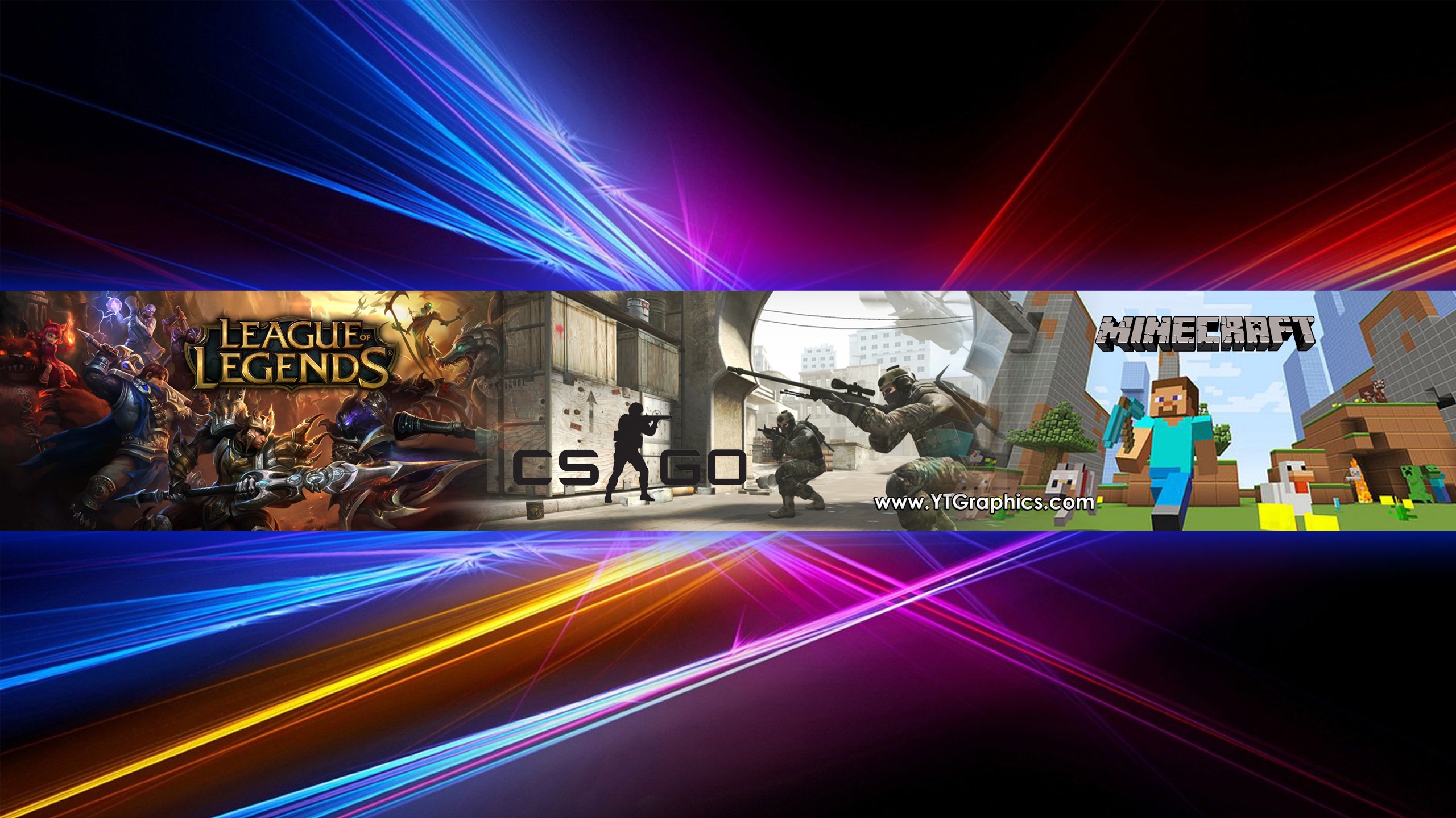 This is a mixed banner for Minecraft, Counter Strike: Global Offensive, and League of Legends.