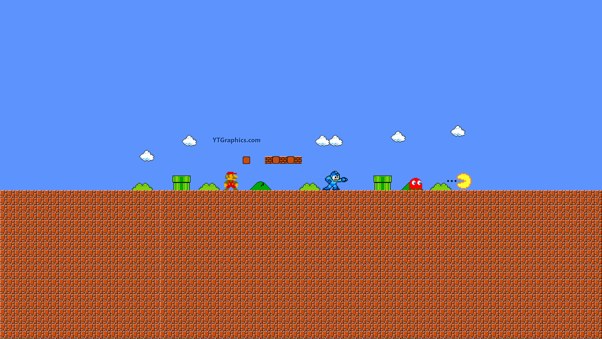Today’s YouTube channel art is “Retro Arcade”. Mario, Megaman, and Pac-Man in their 8-bit glory. This banner was created by request, if you’ve been coming to this site long enough, you’ve probably noticed a popup that appears randomly asking you for feedback… next time it pops up be sure to enter your suggestion. Your idea could be next.