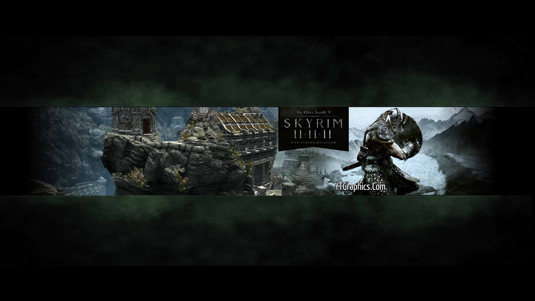 Description: An amazing green and black channel art featuring images from Skyrim: Elder Scrolls V