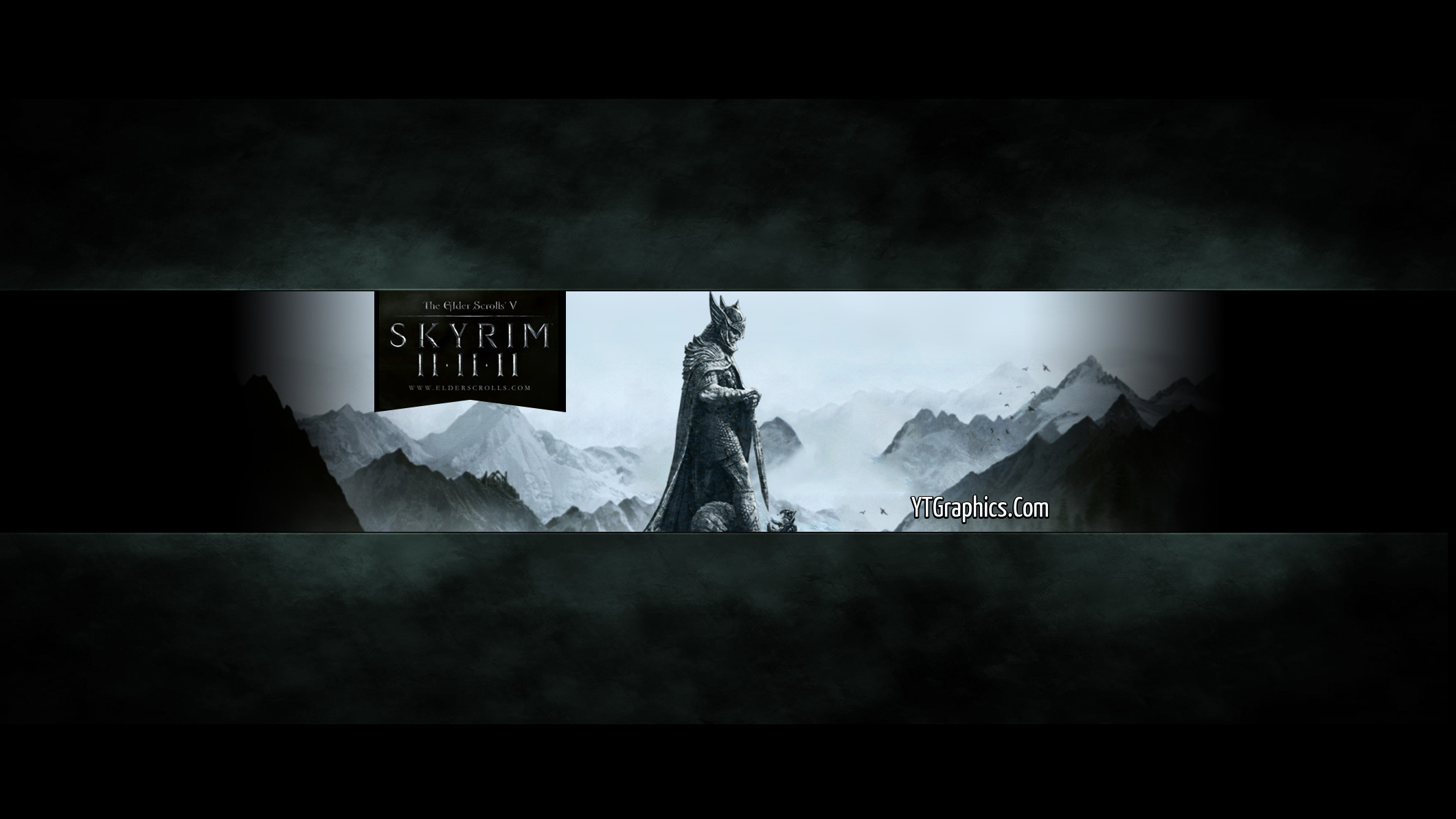 Description: This Skyrim Youtube Channel art banner uses dark colours and images from within the game.