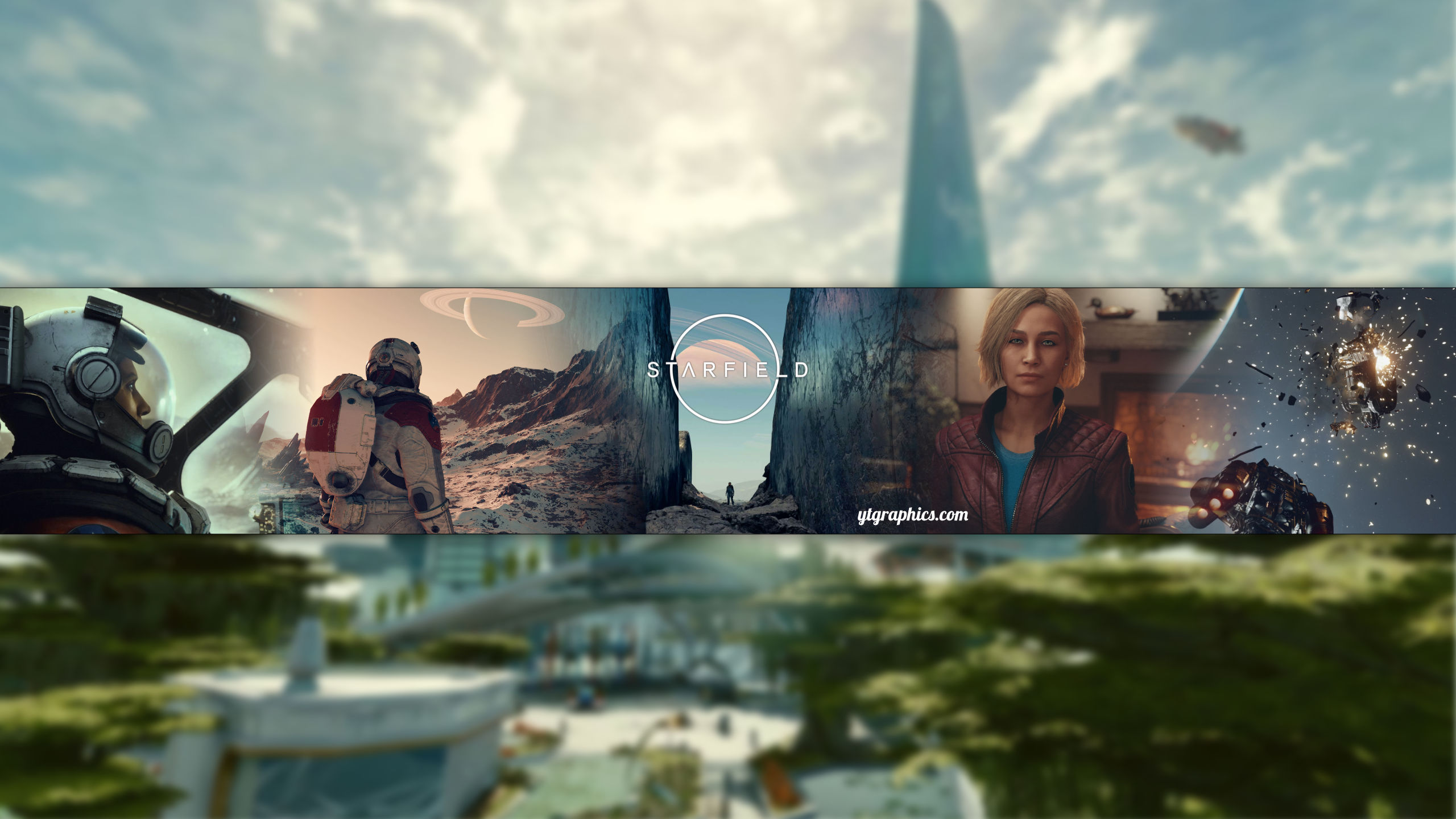 Get ready to blast off into the future of gaming with this captivating image. The centerpiece of this artwork is a mesmerizing space vista, showcasing the vastness of the cosmos. Against a dark backdrop, stellar clusters twinkle in vibrant hues, illuminating the scene with a sense of awe and wonder.Standing out prominently in the foreground is the enigmatic title "Starfield." The letters are sleek and futuristic, exuding an air of mystery and anticipation. Each letter is finely crafted, resembling shining metallic elements, suggesting that this game will take players on an epic adventure beyond the realms of imagination.Hovering just above the title is a majestic celestial body, possibly a planet or a spaceship. Its surface is adorned with intricate details, evoking a sense of realism while hinting at the boundless wonders that lie within this new gaming experience. The planet casts a soft glow, delicately illuminating the surrounding area.As we explore the image further, we notice a trail of faint stardust streaking across the sky. This subtle touch adds a dash of dynamism to the composition, symbolizing the exciting journey that awaits gamers who embark on this new chapter in interactive entertainment.The hues chosen for this artwork lean toward deep blues and purples, creating a mysterious and atmospheric atmosphere. This color scheme enhances the sense of space exploration, drawing viewers into a captivating world where the boundaries of reality are blurred.Whether you're a seasoned gamer or a curious newcomer, this YouTube channel art banner invites you to enter the enchanting unknown of "Starfield." With its striking visual elements and invigorating theme, it serves as an exciting portal to a world of countless adventures and unforeseen discoveries. Buckle up and get ready to embrace the future of gaming!
